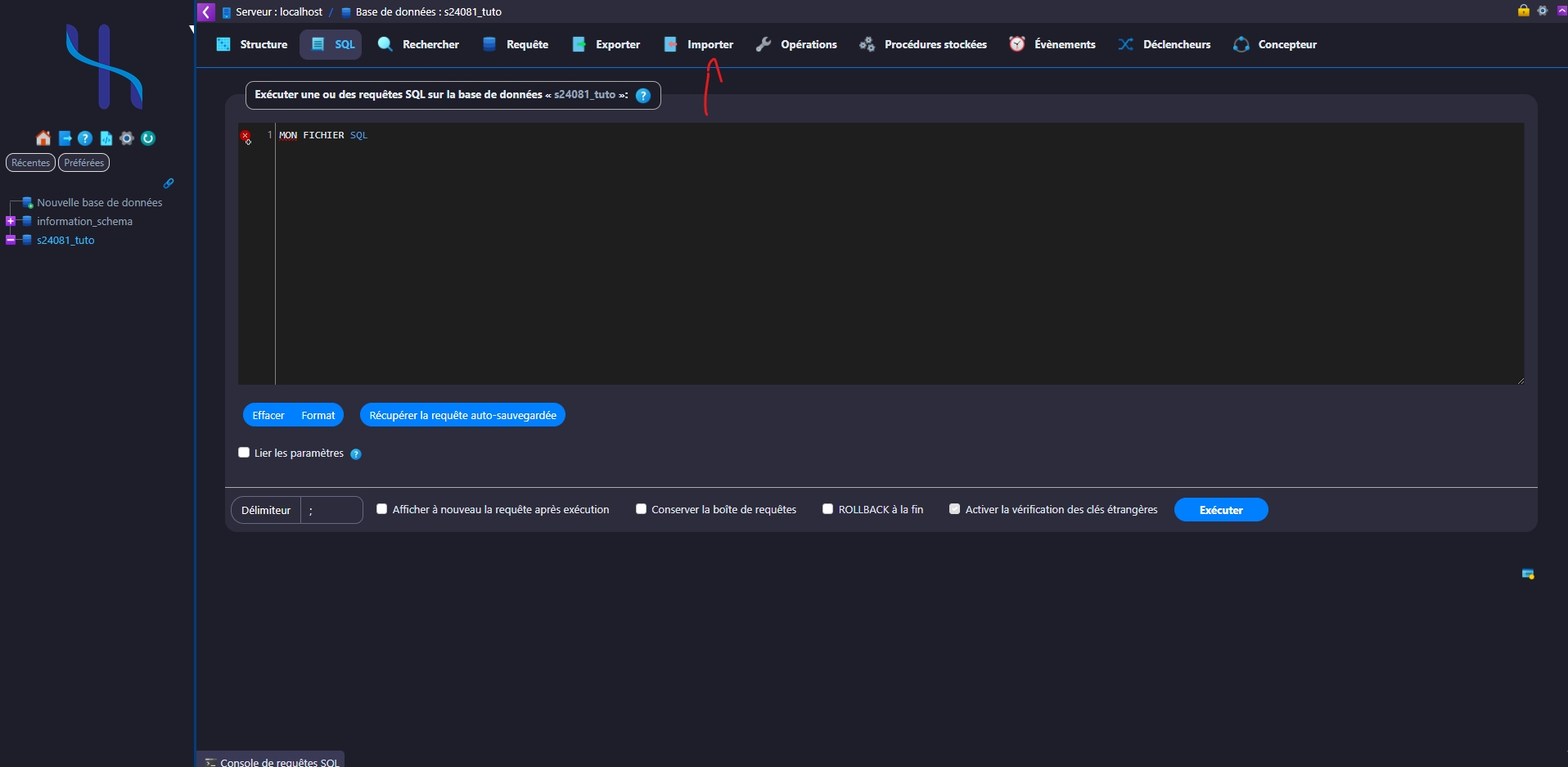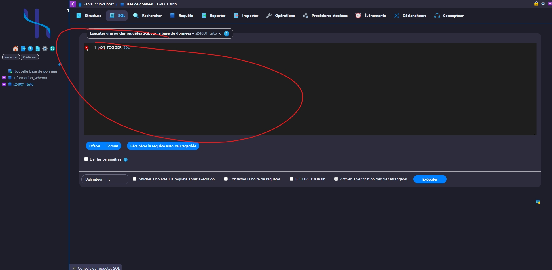 Si cela remet une erreur, alors mettez le fichier .sql dans votre bureau ou dans n'importe quel dossier peu importe puis faite clique droit et compresser