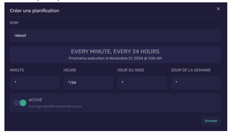 Give your task a clear name like reboot, and set the schedule — for example, every 24 hours (*/24 in the "Hour" field).