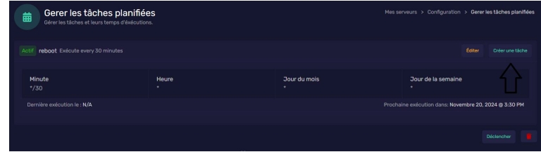 From your server panel, open the server in question, then navigate to the "Scheduled Tasks" section.