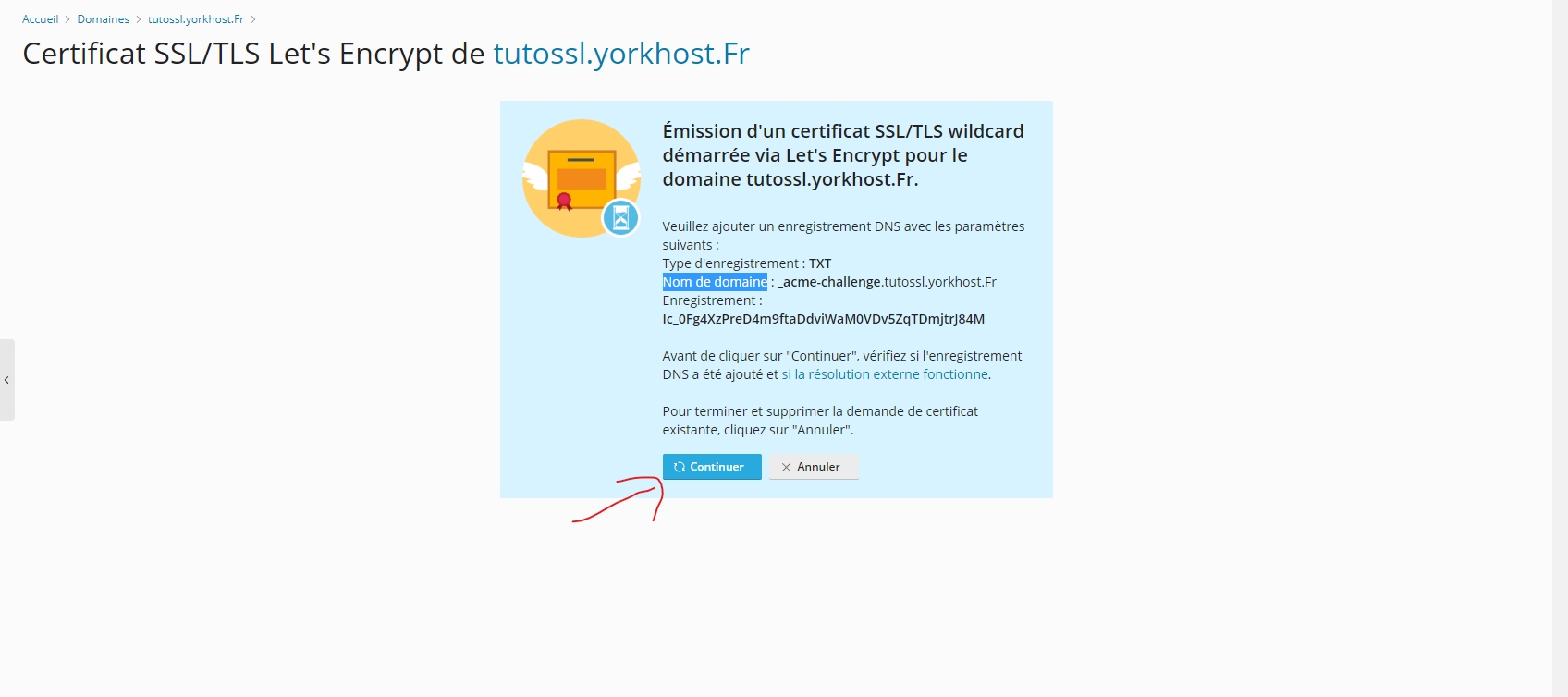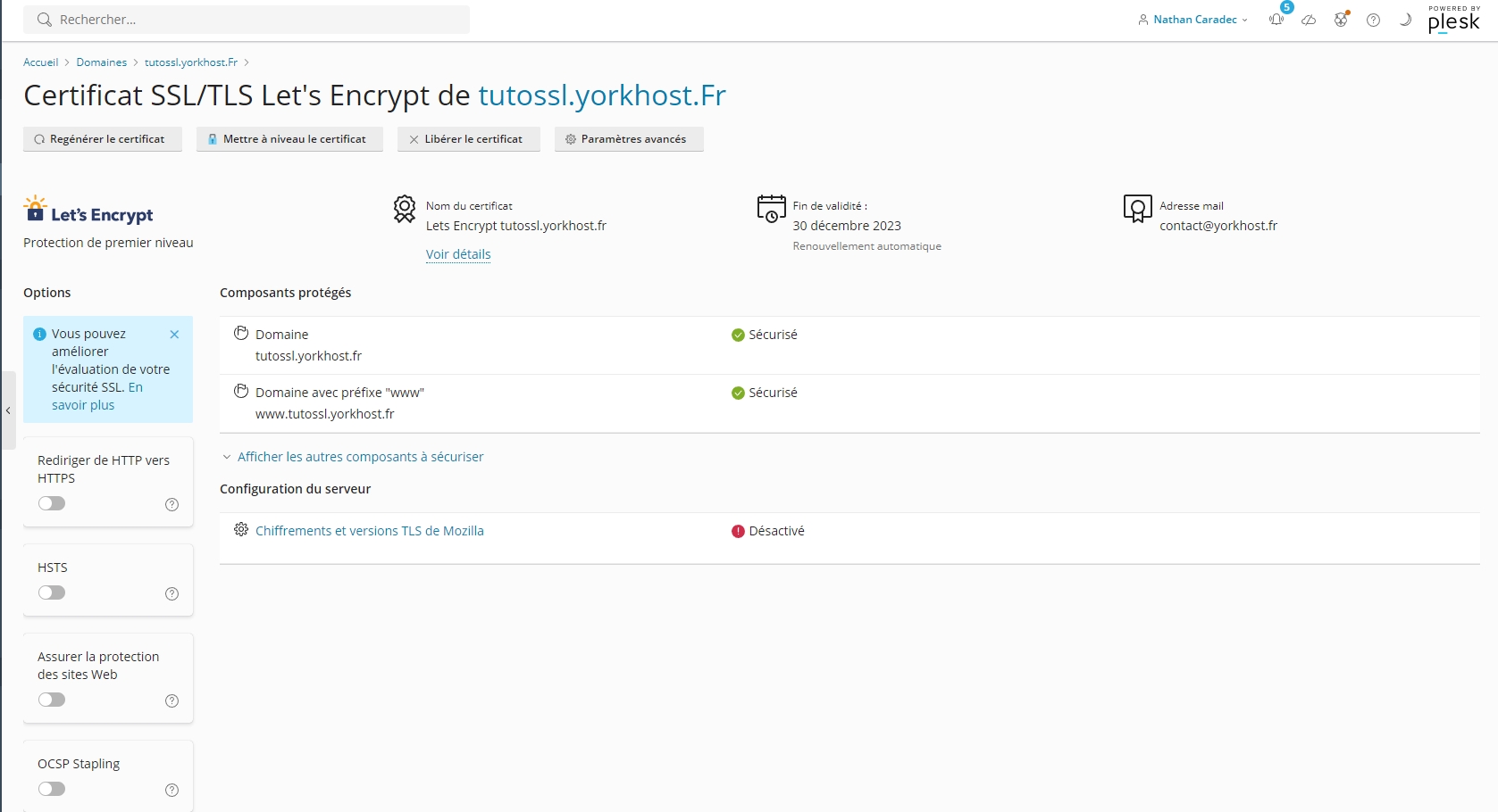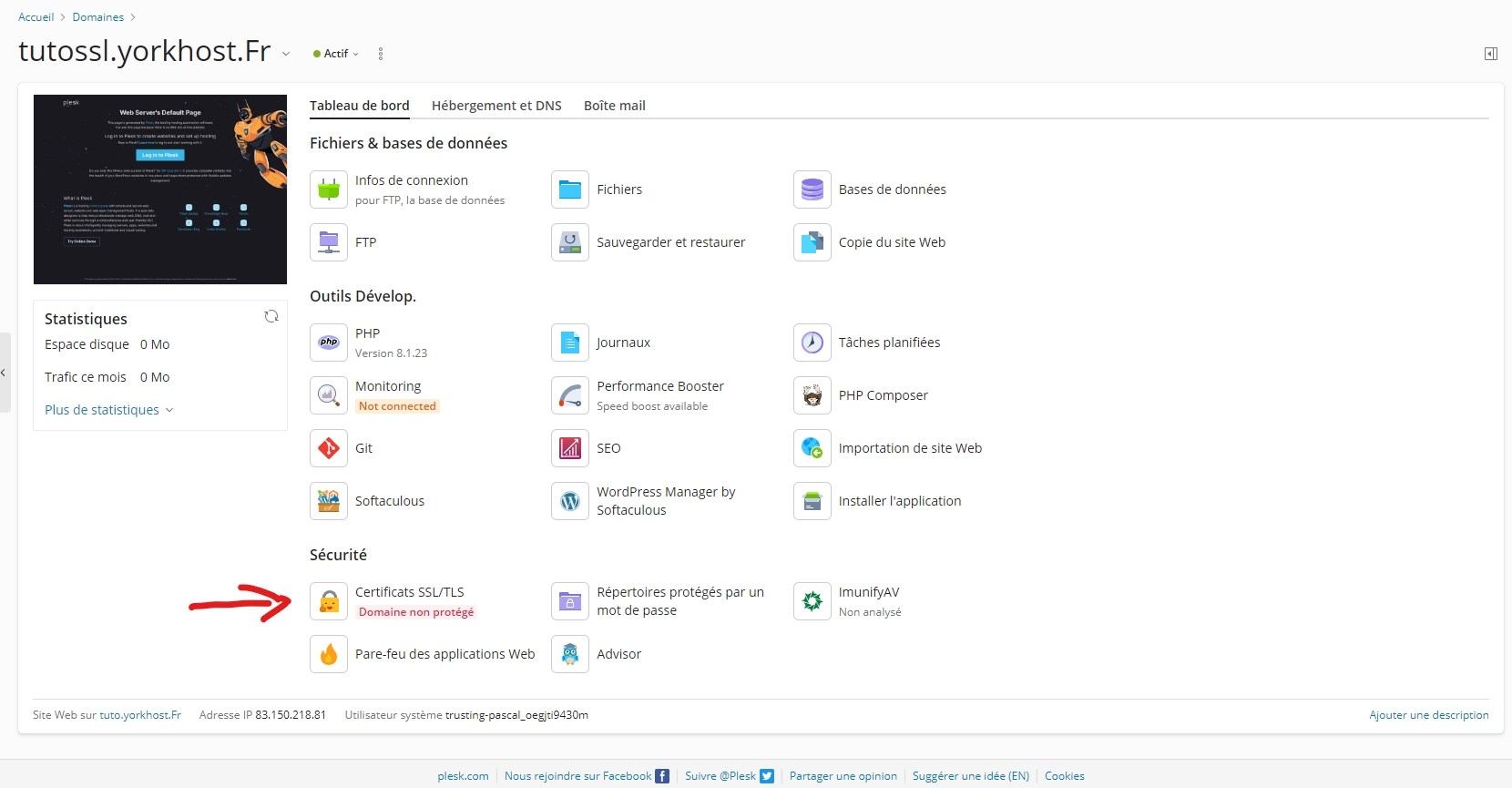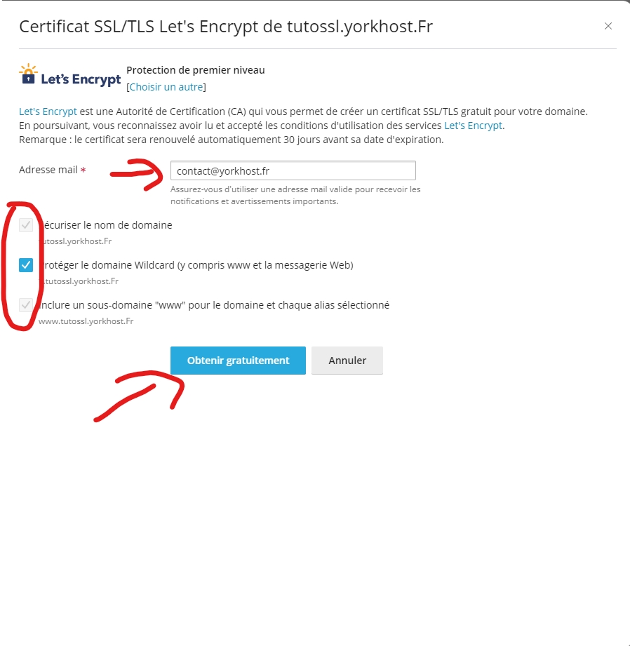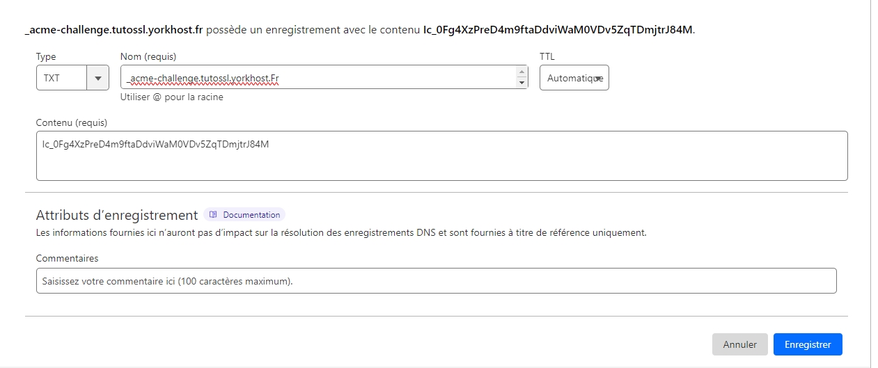 For this tutorial, we’re using a subdomain of yorkhost.fr, namely tutossl.yorkhost.fr.