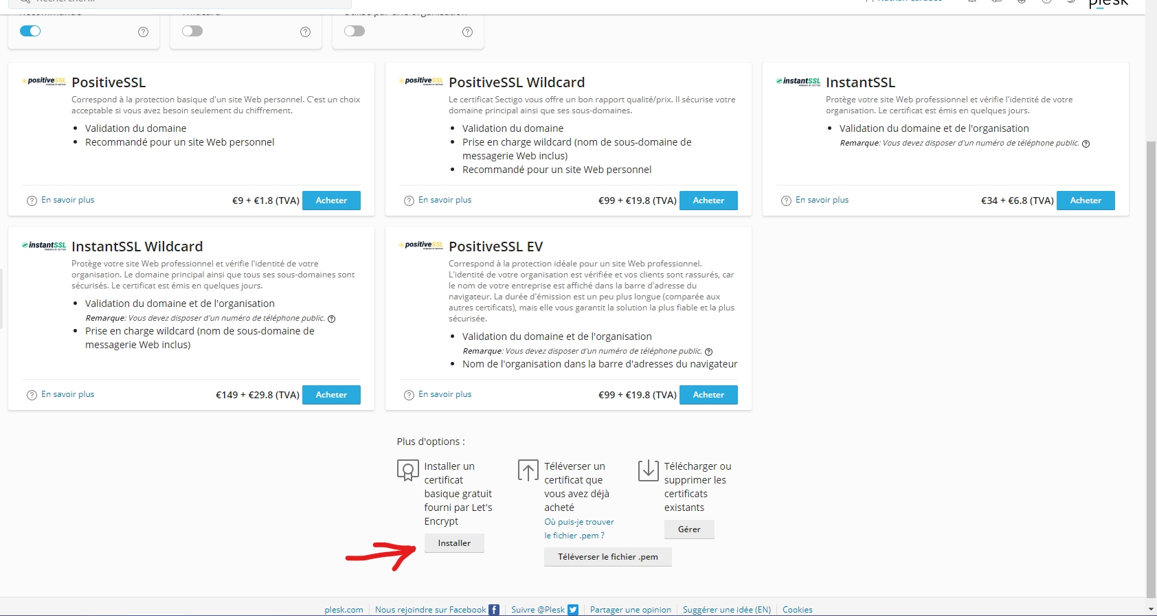 After accessing the SSL/TLS Certificates page, scroll down and click on Install.